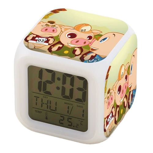 Despertador digital LED de três porquinhos quadrado 8x8x8cm