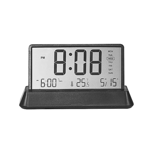 Material: plástico Tamanho: 12,8* 5* 7,7 cm Peso: 350 g Display digital grande: possui uma tela grande e fácil de ler que mostra hora, temperatura e data, tornando-o perfeito para uso em quartos ou escritórios. Design preto elegante: o design preto moderno e elegante complementa qualquer decoração, tornando-a adequada para uso doméstico ou no escritório. Exibição de temperatura: Este relógio também mostra a temperatura atual, permitindo que você se mantenha informado sobre o ambiente. Operado por bateria para maior comodidade: alimentado por baterias, este relógio oferece fácil configuração e portabilidade, tornando-o ideal para vários locais. Perfeito para estudantes e profissionais: sua tela grande e recursos versáteis o tornam uma excelente escolha para estudantes, profissionais ou qualquer pessoa que precise de um despertador prático e elegante.