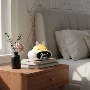 Despertador Infantil Coelho com Luz Noturna - Auxílio para a Rotina de Sono e AcordarO Despertador Coelho Infantil une praticidade e diversão em um design lúdico e encantador. Perfeito para o quarto das crianças, este relógio despertador é um aliado para estabelecer rotinas, incentivando a autonomia dos pequenos na hora de acordar para a escola e criar hábitos de sono saudáveis.Com recursos inteligentes, ele não é apenas um relógio digital; é também uma luz noturna suave que acalma o ambiente.Palavras-Chave e Características PrincipaisDesign Infantil Arredondado: Formato Coelho lúdico com orelhinhas e expressão amigável.Luz Noturna Colorida: Oferece iluminação suave para o quarto e possui modos com 7 cores vibrantes para alternar por toque.Recarregável e Portátil: Bateria interna de 1500 mAh (geralmente recarregada via USB-C).Relógio Despertador Digital: Display LED com números grandes e claros, fácil de visualizar.Fácil de Usar: Botões intuitivos para programação simples, ideal para pais e crianças.Funções para o Sono: Inclui despertador com temporizador e função para despertar gradativo (anti-sonolência).Material Seguro: Fabricado em ABS resistente, ideal para uso infantil.Benefícios (Objeções)Rotina e Autonomia: Ajuda as crianças a acordarem sozinhas e a se orientarem no tempo, facilitando a rotina da manhã e a organização das atividades.Medo do Escuro: A Luz Noturna suave tranquiliza e ilumina levemente o quarto, proporcionando segurança na hora de dormir.Decoração Infantil: O design de coelho serve como um item de decoração divertida e acolhedora para o quarto.Ficha Técnica e EspecificaçõesModelo: ON-LM305Bateria: 1500 mAhAlimentação: 5 Vdc / 2A (Type-C)Material: ABSUso Principal: Relógio Despertador InfantilDimensões (Aprox.):Altura: 11 cmLargura: 10 cmComprimento: 9 cm"As imagens são meramente ilustrativas"Peso: 250 g Marca: Não Informado