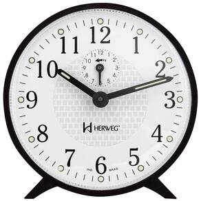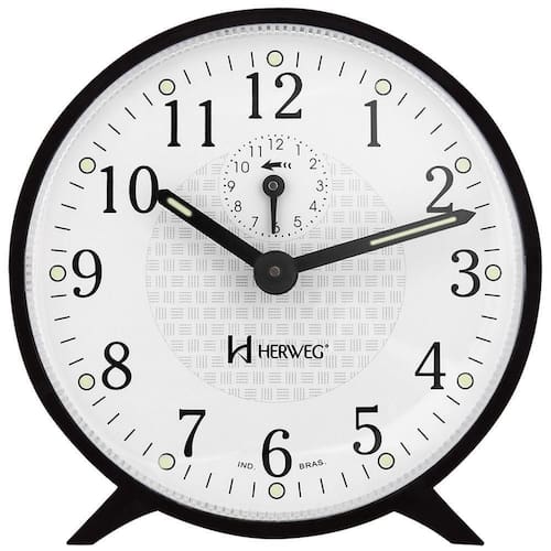 Despertador mecânico - 2220-34 Marca: herweg Cor: preto Formato: redondo Estilo: clássico Relógio despertador mecânico a cordas Base em plástico injetado Visor de acrílico Ponteiro com massa luminosa noturna Mostrador com massa luminosa noturna Botões de regulagem na parte traseira Características técnicas: Alarme com som campainha Funcionamento mecânico Medidas: Altura do relógio: 10,5 cm Largura do relógio: 10,5 cm Espessura do relógio: 4,2 cm com botões traseiros 5,0 cm O despertador acompanha: Manual de instrução Certificado de de 12 meses Marca: Não Informado Ean: 7891984460002