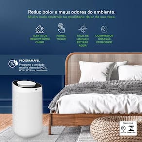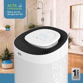 - Alta Capacidade: Retira até 12 litros de água do ar por dia.