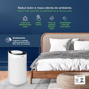 Alta Capacidade: Retira até 12 litros de água do ar por dia.
