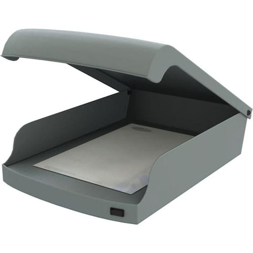 Características:- Potência: 27 W em 127 V e 20 W em 220 V - Tolerância: +/- 10% - Corrente: 0,212 A em 127 V e 0,091 A em 220 V - Consumo de energia: 0,027 KW/h em 127 V e 0,020 KW/h em 220 V- Dimensões: 290 x 415 x 220 mm- Capacidade: 1500 Folhas de 75 g- Tampa e base em poliestileno de alto impacto- Superfície de apoio em chapa de aço pintada eletrostaticamente- Dimensões adequadas para os formatos mais usuais de papel: Carta, A4, Ofício 9 e Ofício 2- Termostato regulador de temperatura- Peso: 2,760 g