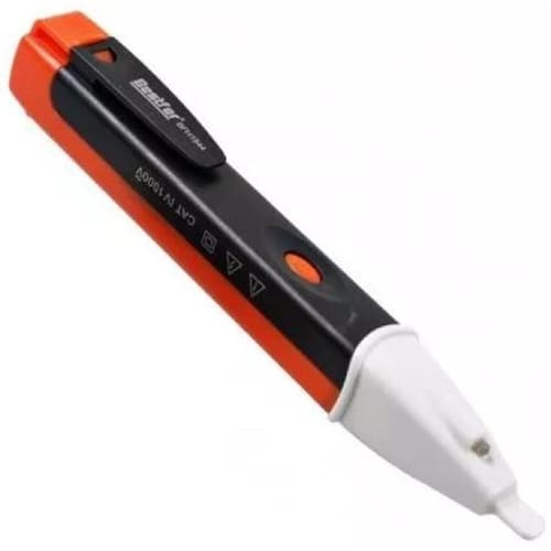 Tamanho APROX.: 15,3 x 1,7 x 1,9 cm Cores Laranja com Preto e Creme MATERIAL: Plástico e Metal CARACTERÍSTICAS GERAIS: Detector de tensão elétrica AC 90V - 1000V. Utiliza 2 pilhas "AAA" 1.5V inclusas Ean: 7899206167456