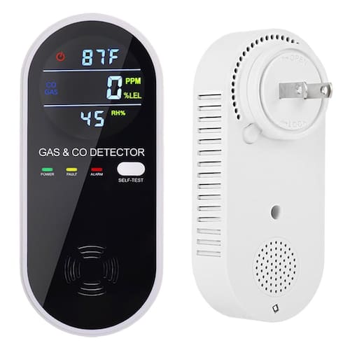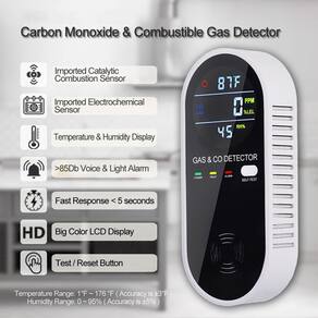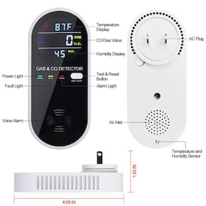 - Detectores de gás e monóxido de carbono 4 em 1: detector de gás natural plug-in e alarme de monóxido de carbono pode detectar níveis de monóxido de carbono e gás natural, bem como a temperatura e umidade do ambiente circundante.