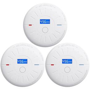 detector de fumaça - Combo Smoke and Co Detecor: Possui tecnologia eletroquímica de detecção de monóxido de carbono e sensor de fumaça fotoelétrico otimizado para detectar partículas de fumaça maiores produzidas por incêndios ardentes; ajuda a minimizar o número de alarmes falsos - Funciona com bateria de 10 anos: esta combinação de detector de fumaça e alarme detector de monóxido de carbono oferece 10 anos de energia contínua com uma bateria de lítio embutida; fornece monitoramento contínuo dos níveis de fumaça e CO, mesmo se houver uma falha de energia; um sinal de fim de vida permitirá que você saiba quando for hora de substituir a unidade para segurança - Botão de teste/deslizamento: Testa a unidade para operação adequada e reinicia o alarme de monóxido de carbono, alarme - Visor LCD prático: indica claramente a concentração de monóxido de carbono (CO) em tempo real no ar circundante, bem como a vida útil restante da bateria e o status de funcionamento do alarme; se uma concentração de CO de 30-999 ppm existir por um determinado período de tempo, a tela ficará azul e o indicador LED piscará em vermelho 4 vezes a cada 5,8 segundos - Um alarme alto de 85 decibéis soa quando o monóxido de carbono e os níveis de fumaça começam a subir, fácil de instalar e usar: o alarme pode ser facilmente instalado com suporte de montagem. Sem mais fio