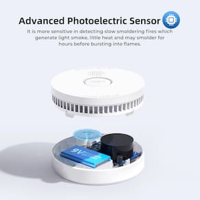 - ?Tecnologia fotoelétrica?O GS509A é um alarme de fumaça fotoelétrico. A tecnologia fotoelétrica é mais sensível na detecção de incêndios lentos que geram fumaça leve, pouco calor e podem queimar por horas antes de explodir em chamas