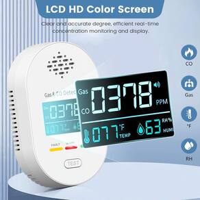 - ?Monitoramento 4 em 1 em tempo real?Possui um visor digital grande e fácil de ler que mostra simultaneamente os níveis de monóxido de carbono (PPM), gás combustível (%LEL), temperatura (°F) e umidade (RH%) — fornecendo dados abrangentes de qualidade do ar num relance.