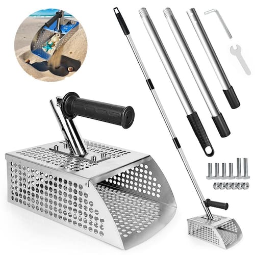 - Ancinho de pulgas de areia multifuncional para praia: Pá de areia profissional para detecção de metal, resistente e durável. Adequado para exploradores profissionais, também adequado para iniciantes em exploração de praia. Você pode usar o ancinho de pulgas de areia para a praia como acessórios de detector de metais, colher de areia para panning de ouro de praia, pá de areia subaquática, escavação arqueológica e assim por diante