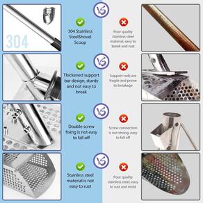 - Pá de areia para detecção de metal: nosso ancinho de pulgas de areia para praia é feito de aço inoxidável 304 de alta qualidade, o que garante que o ancinho de pulgas de areia para a praia seja durável e resistente à ferrugem. Em condições adversas, a pá de detecção de metal dura mais do que as pás de areia padrão, oferecendo décadas de peneira de areia confiável para os rastreadores de praia