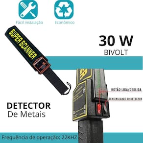 Descrição do anúncio: O detector de metal manual portátil segurança revista scanner é um dispositivo essencial para aumentar a segurança em qualquer local. Com alta precisão, permite a inspeção de pessoas, bolsas, malas e sacolas de forma fácil e eficiente. Ideal para shows, eventos e locais onde é necessário assegurar a segurança do público. Identifica metais grandes e pequenos, oferecendo alerta sonoro, luminoso ou vibratório. Extremamente leve, fácil de usar, e com bateria recarregável, oferece excelente autonomia e ajuste de sensibilidade para detecção confiável. Inclui suporte para cinto, facilitando o transporte e uso diário. A escolha perfeita para assegurar a detecção de metais e proporcionar tranquilidade a todos. Conteúdo da embalagem: Detector de metais portátil Bateria ou bateria recarregável de 9v Tampa da bateria Manual de instruções Características: Alta precisão na detecção de metais grandes e pequenos Alerta sonoro, luminoso ou vibratório Leve e fácil de usar Bateria recarregável com excelente autonomia Ajuste de sensibilidade Suporte para cinto incluído Design compacto e discreto Especificações: Frequência de operação: 22khz Potência: 270mw Corrente operacional: 50ma Faixa de temperatura de operação: -15c a +55c Tensão de energia: bateria padrão ou recarregável de 9v Dimensões: 41 l x 8,5 w x 4,5 h cm Peso líquido: 230g Principais perguntas sobre o produto e respostas: 1 como funciona o alerta de detecção O detector oferece alerta sonoro, luminoso led verde/vermelho e vibratório para indicar a presença de metais. 2 qual é a autonomia da bateria A bateria recarregável possui excelente autonomia, garantindo uso prolongado sem necessidade de recargas frequentes. 3 o detector é ajustável para diferentes níveis de sensibilidade Sim, o detector permite ajuste de sensibilidade para se adaptar às necessidades de cada situação. 4 é fácil de transportar e usar diariamente Sim, o detector é extremamente leve e compacto, vem com um suporte para cinto, facilitando o transporte e o uso diário. 5 em que ambientes o detector pode ser O detector é adequado para uma ampla gama de ambientes, incluindo shows, eventos, escolas, aeroportos e instalações esportivas, entre outros. 6 qual é a faixa de temperatura de operação do dispositivo O detector opera em uma faixa de temperatura de -15c a +55c, garantindo desempenho confiável em diversas condições ambientais.