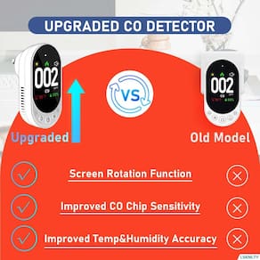 - LSENLTY Detector de monóxido de carbono plug-in, detector de CO portátil 3 em 1 (temperatura e umidade), detector de CO de tela colorida HD com função de alarme integrada, adequado para hotéis, trailers, etc. 1 pacote