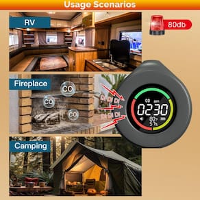 - ?Detector de CO multifuncional 3 em 1?Os detectores portáteis de monóxido de carbono MOES não são apenas capazes de detectar níveis de CO, mas também temperatura e umidade. Com um sensor de taxa de atualização de 2s, podemos determinar rapidamente o valor de CO circundante e a qualidade geral do ar, sabendo em tempo real que o ambiente é seguro ou não. Níveis de CO, dados de temperatura e umidade são exibidos claramente em uma tela HD colorida.
