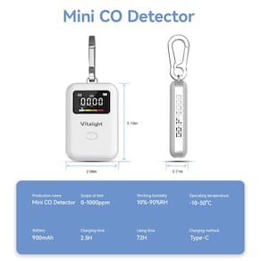 - Detector de CO portátil: sensor co integrado de alto desempenho, usando princípios ópticos infravermelhos mais profissionais para detectar monóxido de carbono com precisão e rapidez. Se a concentração de monóxido de carbono exceder 10 ppm, um alarme será emitido imediatamente. Se você não precisar do som do alarme, pressione o botão liga/desliga duas vezes para desligar o som do alarme. Faixa de detecção de CO: 0-1000PPM.