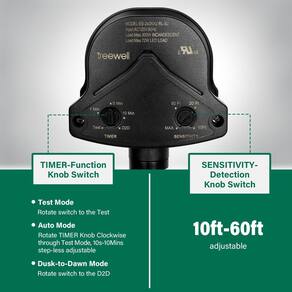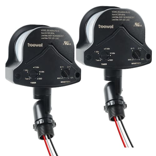 TREEWELL Pacote com 2 detectores de movimento de substituição de 240 graus, tempo de atraso ajustável e sensibilidade de detecção de até 1,8 m de alcance, 3 modos de funcionamento sensor de movimento Pir para holofote de segurança, preto, listado pela UL - ?3 modos em 1 sensor de movimento?"Modo automático" quando o movimento é detectado no escuro, a luz acenderá e após 1 minuto a 10 minutos ela desligará dependendo da sua configuração; "Modo D2D" liga automaticamente à noite e permanece desligada durante o dia, funciona apenas à noite; o "modo de substituição manual" permite o controle manual ligado e desligado, a luz permanecerá acesa por 8h, mas ligará automaticamente. off at dawn. - ?Tempo e sensibilidade ajustáveis contínuos?O tempo de atraso pré-selecionado do detector de movimento é ajustável de 10 segundos a 10 minutos no botão "TIMER", e a cobertura de detecção pode alcançar até 18 metros com uma faixa de detecção de 240°, que pode ser personalizada por você com base em suas necessidades específicas. - ?Cabeça de sensor rotativa?Projetado com braço pivô mais longo, 180 graus verticalmente, pescoço do sensor ajustável horizontalmente de 300 graus, mais fácil para você apontar o sensor onde quiser, adequado para a maioria das aplicações de montagem em paredes externas/internas e beirais, como varanda, quintal, porta da frente, garagem, calçada, degrau, etc. - ?Sensor de movimento de substituição?Uma ótima opção para reparar ou atualizar suas luminárias existentes sem ter que substituir toda a luminária, economize seu dinheiro. O sensor de holofote de segurança de movimento é fácil de instalar e configurar, porcas de arame incluídas, arame fácil de instalar. Classificação de carga: Máx. Lâmpada incandescente de 300 W, driver de LED máximo de 72 W/lâmpadas LED. - ?Serviço de alta qualidade?Oferecemos serviço pós-venda 7*24h e uma garantia de 2 anos. Substituição fácil e rápida e reembolso por problemas de qualidade são garantidos.
