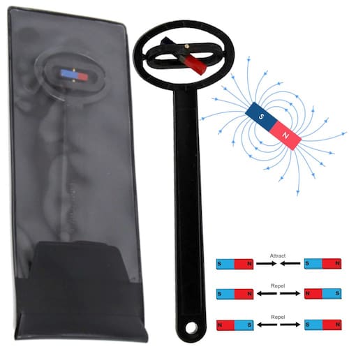 Este detector de mastro magnético é uma ótima ferramenta de baixo custo para visualizar e identificar a polaridade dos ímãs, ou para descobrir se um objeto é magnético. Sua construção simples e durável significa que este detector é uma ótima ferramenta educacional para ensinar aos alunos as propriedades dos ímãs e seus campos magnéticos. Este detector de pólo magnético consiste em um ímã de barra com seu polo norte pintado de vermelho e seu polo sul pintado de azul. Quando mantido até o polo sul de um ímã, a extremidade vermelha do indicador aponta para o ímã. - O suporte magnético de fricção ultrabaixa permite que este detector magnético detecte campos magnéticos a mais de 30 cm de distância - Detecte e identifique facilmente onde estão os postes em um ímã para manuseá-los com segurança. Este detector de mastro magnético consiste em um ímã de barra com seu polo norte pintado de vermelho e seu polo sul pintado de azul - Ótimo para educadores – Ensine e mostre às crianças o que são bastões em um ímã e como eles interagem uns com os outros. - Prático e pequeno para facilitar o transporte