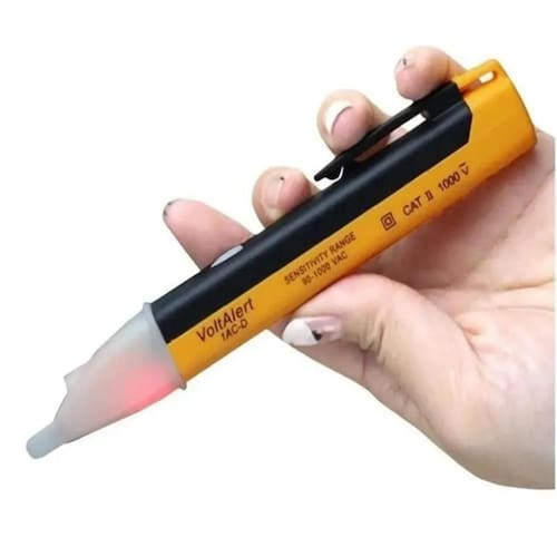 Não precisa ter contato com a parte energizada. Ao encostar o detector próximo ao fio de energia ou cabos energizados ele emite um sinal sonoro e luminoso, mesmo que o cabo esteja encapado ou o equipamento isolado. Auxilia no trabalho e previne acidentes. Quando a tensão 220 V for existente por duas fases 110 V é possível identificar quando a energia é 110 ou 220 VAC.