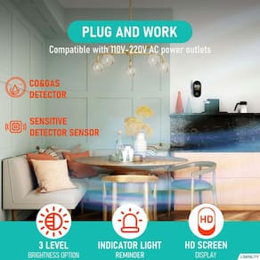- ?Design abrangente de parede com plugue de detector de CO e gás para casa e viagens?Tanto o monóxido de carbono quanto os gases combustíveis são prejudiciais. Quando o monóxido de carbono e os gases combustíveis no ar excedem o padrão, isso causará danos ao corpo humano e colocará em risco a segurança da vida. Este detector de monóxido de carbono e combustível plug-in é compatível com tomadas CA de 110V-220V.