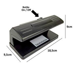 Com sua lâmpada especial o Detector de Notas Falsas, testa facilmente Cédulas de papel e plástico, cheques, RG, CNH, passaporte, tickets, selos de cartórios e muito mais... Características do produto: Este detector aplica radiação ultravioleta para detectar recursos de segurança em papel-moeda Com sua lâmpada especial o detector testa facilmente cédulas e documentos Cédulas de papel e plástico, cheques, RG, CNH, passaporte, tickets, selos de cartórios e etc. Muito prático, seguro e principalmente sem constrangimentos Dissipador de calor interno Lâmpada florescente ultra-violeta azul de 4W Botão On/Off na parte traseira em cima Fonte de alimentação 110v Produto destinada a uso em lojas Medidas aproximadas do detector de dinheiro: 18,5cm x 9,5cm x 9cm Peso aproximado do detector de dinheiro: 240gramas. Itens inclusos: 1 - Detector Testador Dinheiro Nota falsa selos cheques etc... Garantia do produto: Garantia de 90 dias, válida somente para defeitos de fabricação.