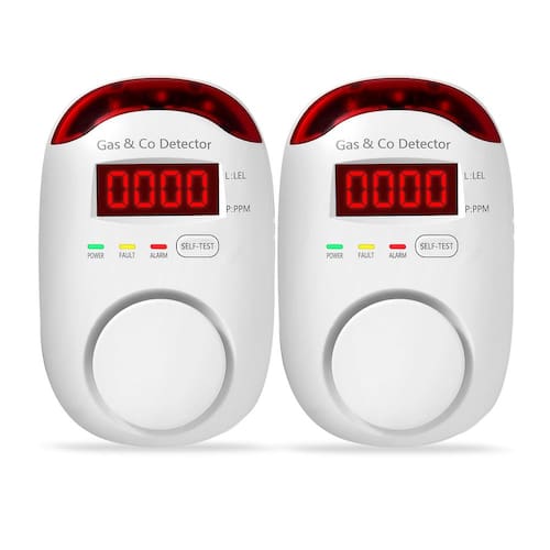 - ?2 pacotes atualizados com detector de gás e monóxido de carbono?Plug-and-play, visor digital LCD, fácil de instalar.