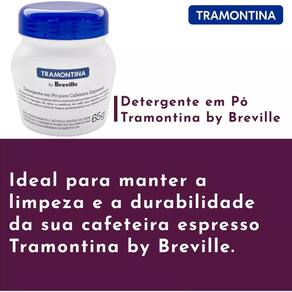 Detalhes do produto O Detergente em Pó para Cafeteira Express 65 g, é ideal para manter a limpeza e a durabilidade da sua cafeteira espresso Tramontina by Breville. Ele foi desenvolvido com oxigênio ativo e enzimas para proporcionar uma limpeza eficiente na remoção de óleos e resíduos de café, sem danificar as peças. É a forma mais prática e fácil de limpar perfeitamente sua cafeteira. Informações técnicas Foi desenvolvido com oxigênio ativo e enzimas para proporcionar uma limpeza eficiente na remoção de óleos e resíduos de café, sem danificar as peças. É a forma mais prática e fácil de limpar perfeitamente sua cafeteira expresso. Compatível com as cafeteiras expresso Tramontina by Breville. Material: detergente em pó. Contém 65g.