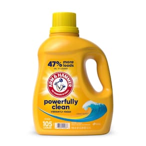 - Um frasco de 3,105 ml de detergente líquido para roupas ARM & HAMMER Clean Burst limpa 105 cargas médias quando utilizado conforme as instruções