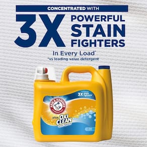 - Com bicarbonato de sódio ARM & HAMMER confiável e combatentes de manchas OxiClean, este detergente de roupa HE é formulado para limpar profundamente as roupas e proporcionar frescor duradoura