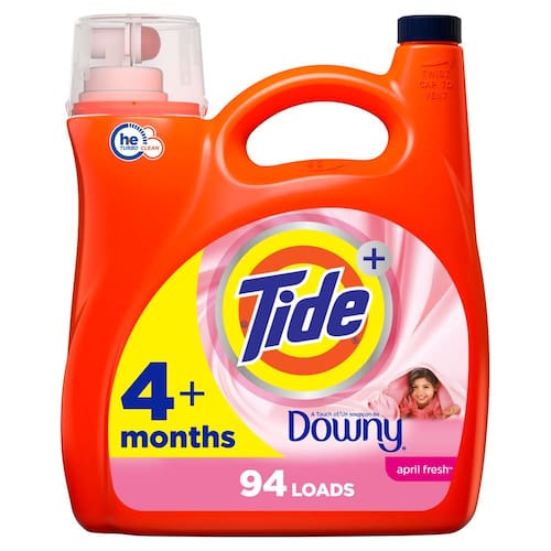 - TIDE + DOWNY: O detergente líquido Tide + Downy oferece a limpeza poderosa da Tide e o frescor do icônico perfume April Fresh da Downy