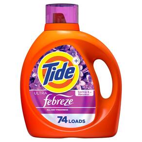 Tide Plus Febreze Freshness HE Turbo Clean Detergente líquido para lavanderia, aroma de primavera e renovação, 3,105 ml, 74 cargas (a embalagem pode variar)