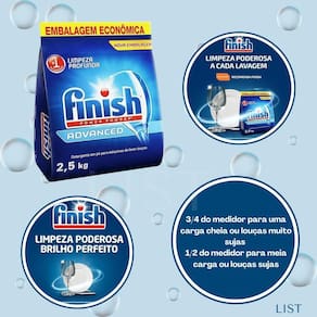 Produto: Finish Power Powder Advanced Quantidade: 2,5kg Ideal para: Lava-louças