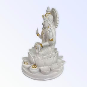 Deusa Lakshmi na Flor de Lótus Resina - Escolha Modelo e Cor Cor: Branco Resina 15 cm Deusa Lakshmi na Flor de Lótus Resina - Escolha Modelo e Cor