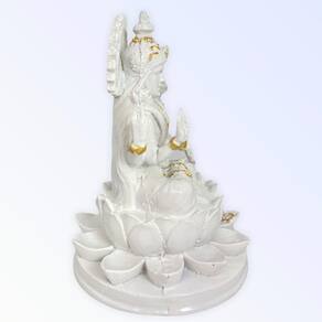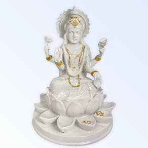 Deusa Lakshmi na Flor de Lótus Resina - Escolha Modelo e Cor A Deusa Lakshmi da Bialluz representa a sabedoria, a fortuna, o intelecto e a prosperidade. Nossa Escultura Deusa Lakshmi trará muita sabedoria e luz em sua vida. Emanará muitas energiass positivas em seu ambiente e afastará todas incertezas. Confeccionada em resina nossa escultura tem alta durabilidade e detalhes muito bem feitos que compõem a belíssima qualidade dessa peça. Escolha um dos modelos disponíveis na opção COR do próprio anúncio. Enviamos a sua escultura em até 24 horas após a confirmação de pagamento! Material: Resina Por ser uma peça feita artesanalmente e pintada à mão podem ocorrer pequenas variações nas cores ou tamanhos. Caso tenha alguma dúvida nos mande mensagem que respondemos rapidinho para te ajudar da melhor forma possível! Marca: META ATACADO