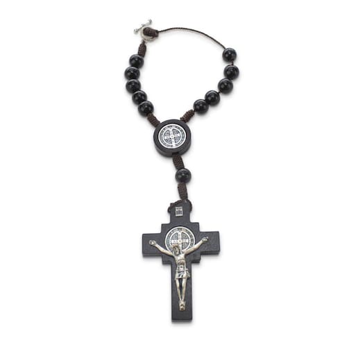 Dezena São Bento Contas em Madeira 10 mm Metal / Pompom / Cordão Aproximadamente 25 cm Dimensões aproximadas do produto. Produto pintado a mão, podendo sofrer variações de cores. Marca: Não Informado