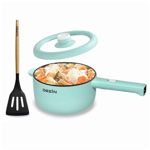 Cozinhe sem fogão a qualquer hora com a Panela Elétrica DEZIN! Além da função tradicional de cozimento, esta panela possui revestimento antiaderente de qualidade alimentar que permite refogar alimentos facilmente, garantindo praticidade e versatilidade. Acompanha uma espátula de silicone para facilitar o manuseio dos alimentos. Ideal para preparar bifes, frango, arroz frito, macarrão, ovos, sopas e muito mais, tornando-se o item indispensável para sua quitinete, república ou dormitório.