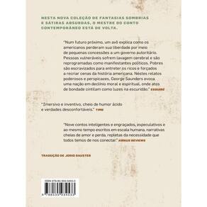 Depois do premiado Lincoln no limbo, o mestre do conto contemporâneo está de volta com uma nova coleção de fantasias sombrias e narrativas cheias de humor e absurdo. Em Dia da libertação, George Saunders volta a empregar seu talento elástico para criar composições ficcionais incomuns. São nove textos de estilo e arranjo variados, que tratam de quem somos nós nesse mundo incompreensível em que vivemos. Tal os personagens deste livro, somos aqueles incapazes de perceber as construções sociais e familiares que nos obrigam a cumprir tarefas que nunca se completam, vivendo numa espécie de atuação permanente para uma suposta audiência que nunca chega. Somos também aqueles que, ao tentar fazer o que é certo, descobrem que a cada ação embrenha-se mais e mais numa cadeia de efeitos que só nos afasta da certeza e da correção. Vivemos num mundo onde as relações estão contaminadas pelo uso inescrupuloso e automatizado da linguagem, em que todos os dias se viola “mais uma norma de decoro” a ponto de não restar “nenhuma forma de indignação”. Somos trabalhadores lobotomizados para a satisfação de uma “companhia”, escravizados num parque de diversões, ou então temos nossas memórias apagadas e nos tornamos zumbis extremistas. Mas somos também mães e pais de família protetores, com histórias de trabalho, de traição, ganância e ciúmes. Ao percorrermos estes contos, Saunders nos faz sentir um prazer estranho, como o de “um fantoche que, apanhado no chão, desfruta das mãos que repentinamente o manipulam”. Um livro desconcertante e libertador. “Num futuro próximo, um avô explica como os americanos perderam suas liberdades por meio de pequenas concessões a um governo autoritário. Pessoas vulneráveis sofrem lavagem cerebral e são reprogramadas como manifestantes políticos. Pobres são escravizados para entreter os ricos e forçados a recriar cenas da história americana. Nestes relatos poderosos e perspicazes, George Saunders evoca uma nação em declínio moral e espiritual, onde atos de bondade cintilam como luzes na escuridão.” — Esquire