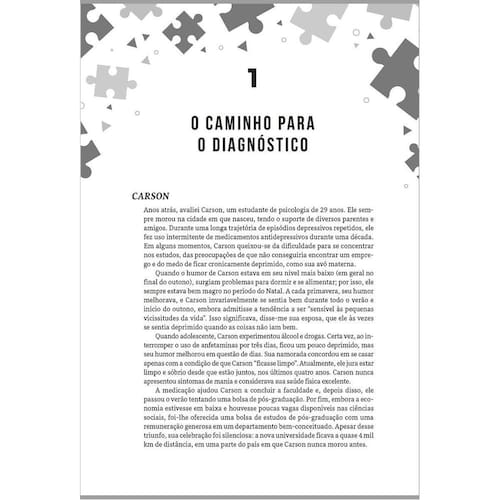 Recurso fundamental para quem trabalha na área da saúde mental, este livro conduz o leitor pelo passo a passo da tomada de decisão diagnóstica. São apresentadas diretrizes para a avaliação das informações coletadas, a construção de um diagnóstico diferencial abrangente, a criação de uma hierarquia de segurança e o uso de árvores de decisão. O autor aborda as condições vistas com mais frequência na prática clínica, com ênfase em como o diagnóstico orienta o tratamento, e inclui vinhetas vívidas que ilustram o processo diagnóstico e permitem que os leitores pratiquem suas habilidades.