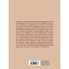A obra Diálogos entre psicanálise e literatura: um ensaio sobre O amor nos tempos do cólera é resultado da dissertação defendida no Programa de Pós-Graduação em Filosofia, da Universidade Federal de São Paulo, em que é realizada uma análise psicanalítica do protagonista do romance O amor nos tempos de cólera, Florentino Ariza. Organizado em três capítulos, o livro, que analisa o romance de Gabriel García Márquez, busca compreender a dinâmica psíquica de Florentino, considerando sua maneira de enfrentar as adversidades da vida a partir da teoria psicanalítica do luto em Freud. Ean: 9786558409731