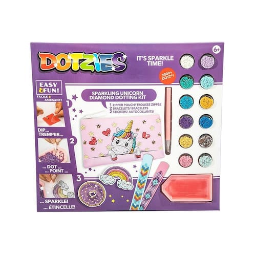 Descubra a magia do artesanato com o Diamond Dotz Unicórnio Brilhante Atividades da Fun Divirta-se! Este kit encantador vem com tudo que você precisa para criar lindas peças decorativas e acessórios com a temática de unicórnio. Com uma bolsa com zíper, dois braceletes, dois adesivos, duas bandejas com cera, duas canetas aplicadoras e um pacote de dotz brilhantes, você pode mergulhar em um mundo de criatividade e diversão. Idade recomendada: A partir de 6 anos. Selo Inmetro: 02115-000.