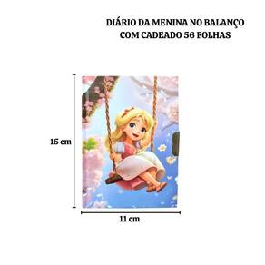 DIÁRIO DA MENINA NO BALANÇO COM CADEADO 56 FOLHAS - SXFS14065 Um diário infantil encantador, adornado com cores vibrantes, projetado especialmente para cativar a imaginação das crianças. Esse diário possui uma capa resistente com personagem encantador. O cadeado não apenas acrescenta um elemento de mistério, mas também incentiva a importância de guardar segredos e sentimentos pessoais. Informações Técnicas:Composição: Papel.Folhas: Listradas / Desenhada.Altura do díario: 15cm.Comprimento: 11cm.Contém: 56 folhas.Peso: 137 gramas.