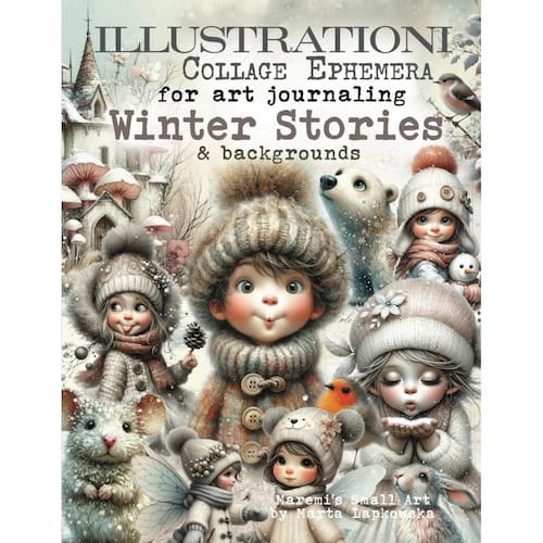 ILLUSTRATONI Collage Ephemera para escrever um diário de arte WINTER STORIES & Backgrounds: um livro com mais de 320 imagens de crianças, fadas, gnomos, natureza, pássaros,... Casas, flores, cenários e muito mais + PALAVRAS