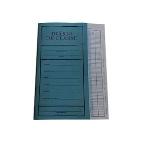 Produzido com capa em cartão azul 180g/m e 14 folhas internas em off-set 63g/m nas medidas 20,7x32,3 cm, de acordo com as exigêncas do MEC, acondicionado em 2 pacotes com 50 unidades cada.