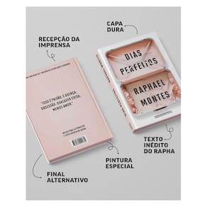Dias perfeitos , o segundo romance de Raphael Montes, ganha agora uma edição especial de colecionador. Com tiragem limitada e capa dura, o livro traz final alternativo, texto inédito do autor e a recepção da imprensa do período que separa ambas as edições. Livro que deu origem à série do Globoplay. Téo é um jovem e solitário estudante de medicina que divide seu tempo entre cuidar da mãe paraplégica e dissecar cadáveres nas aulas de anatomia. Num churrasco a que vai com a mãe contrariado, ele conhece Clarice, uma jovem de espírito livre que, logo no primeiro contato, rouba dele um beijo. Téo fica obcecado por Clarice. Começa a se aproximar de forma insistente. Diante das seguidas negativas, opta por uma atitude extrema: sequestra a jovem e inicia uma viagem pelas estradas do Rio de Janeiro com Clarice sedada ao seu lado — acreditando que, assim, finalmente conseguirá conquistá-la. Os dois atravessam de carro cenários oníricos, entre os quais um chalé em Teresópolis e uma praia deserta em Ilha Grande, e estabelecem uma rotina insólita de abusos e agressões. Clarice oscila entre momentos de desespero e resignação, nos quais corresponde aos delírios conjugais de seu sequestrador. O efeito é tão mais perturbador quanto maior a naturalidade de Téo. Ele fala com calma, planeja os atos com frieza e justifica suas decisões com lógica impecável. Nesta edição de colecionador de Dias perfeitos , leitores poderão reviver esta história de amor à moda de Raphael Montes e reimaginar seu desfecho com um final alternativo exclusivo, além de texto de apresentação escrito pelo próprio autor e duas matérias sobre a obra. “Sou leitor fiel de Raphael Montes desde o primeiro livro, adoro suas histórias de terror psicológico, tensão permanente, perversidade e sempre humor, uma mistura perfeita.” — Nelson Motta “Raphael Montes é um autor que controla com maestria a tensão durante a narrativa. […] Uma mistura do suspense de Alfred Hitchcock com o humor ácido de Quentin Tarantino.” — The Guardian “Repleto de plot twists, violência e cenas de tirar o fôlego, este suspense psicológico usa o humor como válvula de escape. Montes faz você rir, mesmo fazendo você se sentir mal por isso.” — Chicago Tribune