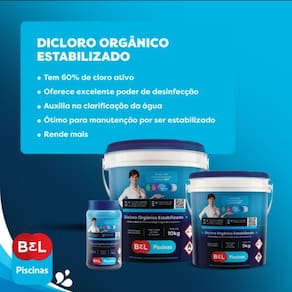 O Dicloro Orgânico Estabilizado Bel Piscinas é um desinfetante premium desenvolvido para manter a água da piscina sempre limpa, cristalina e segura.