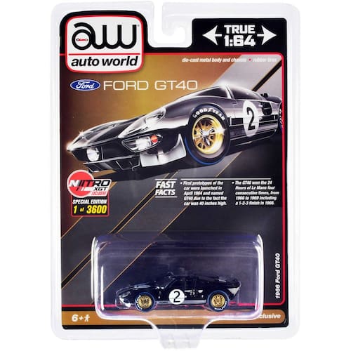 Ford GT40 #2 Black de 1966, edição limitada a 3600 peças, modelo de carro moldado sob pressão 1/64 em todo o mundo da Auto World CP7922