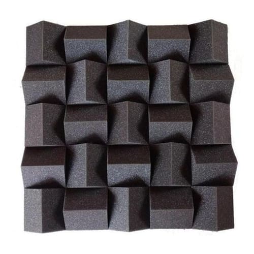 Feita de poliuretano, a espuma acústica é um material fono-absorvedor flexível, de células abertas, que tem como principal função reduzir o tempo de reverberação dentro de um espaço fechado, eliminando o eco e fazendo com o que o som emitido se torne mais seco.