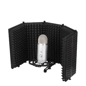 Difusor Acústico Filtro Vocal Booth Com 5 Painéis Dobráveis Solução perfeita para gravar vocalistas ou dubladores em espaços acústicos menores, onde a reflexão da sala seria gravada junto com o vocal, tornando o pós-processamento e a mixagem mais complicados. Isso pode ocorrer em um estúdio caseiro, em um espaço de ensaio não tratado ou em uma situação improvisada. Alojada em 5 painéis de plástico ABS, robusto e profundo, a espuma acústica de alta densidade oferece um ambiente livre de reflexos para o microfone, ao mesmo tempo atenuando qualquer ruído no ambiente. As gravações secas e claras resultantes podem então ser tratadas durante a mistura ou pós-processamento,sem ruídos estranhos ou reflexos indesejados no caminho. O filtro é montado em um pedestal de microfone e o suporte deslizante dianteiros permite ajustar facilmente a profundidade para posicionamento preciso do microfone. Adaptadores com rosca padrão de 5/8 se encaixam na maioria dos suportes de microfone, clipes e Shock Mount.Características:- Solução compacta para proporcionar isolamento sonoro para gravação de voz em espaços não tratados.- Espuma de alta densidade absorve reflexos acústicos e minimiza o ambiente da sala, isolando o microfone.- Composto por 5 painéis,que podem ser configurados e previnir o som que pode refletir de volta ao microfone, especialmente ao gravar vocalistas.- O suporte deslizante facilita a montagem do microfone na posição ideal dentro do filtro de reflexão.- Os adaptadores com pinos e soquetes com rosca de 5/8 são compatíveis com pedestais de microfone,Shock Mount e clipes de microfone.- O design profundo garante a voz seca enquanto atenua o ruído externo.- Ele também pode ser usado para outras aplicações, como gravar um violão ou um gabinete de guitarra elétrica.- Dimensões de cada painel do difusor: Largura:150 mm Altura:325 mm- Peso: 1,5 kg - Ideal para uso em rádios,studios,home studios,TVs,entre outros locais.Solução perfeita para músicos,cantores,Youtubers,produtores,narradores,entre outros profissionais. Obs:não acompanha microfone,pedestal e/ou Shock Mount