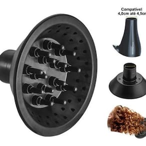 Este difusor de cachos é compatível com vários modelos de várias marcas. Verifique a lista abaixo das marcas e respectivos modelos que ele seja compatível. Atenção: essa lista de modelos não é esgotável, ou seja, pode ser que existam outros modelos compatíveis e que não esteja na relação abaixo. Então, pedimos que meça o diâmetro de entrada de seu secador, se for de 4,5cm, ele é compatível.