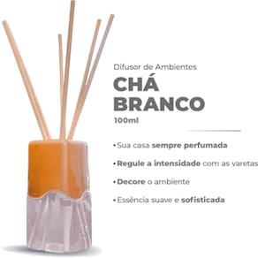 Difusor de Aromas Com Varetas 100ml Coala Chá Branco Aroma: Chá Branco Difusor de Aromas Coala Chá Branco 100ml com Varetas Difusor Coala Chá Branco 100ml com varetas. Perfuma, decora e proporciona um ambiente sofisticado. Essência suave e duradoura. Transforme qualquer ambiente com um toque de sofisticação e bem-estar. O Difusor de Aromas Coala Chá Branco é ideal para quem deseja manter sua casa, escritório ou espaço comercial sempre perfumado com uma fragrância suave e duradoura. Seu design moderno, com frasco elegante e varetas difusoras, alia beleza e funcionalidade, decorando com discrição e charme. Benefícios do Difusor Coala Chá Branco: - Perfume prolongado no ambiente - Fragrância suave, ideal para o dia a dia - Frasco com design decorativo - Acompanha varetas difusoras - Regule a intensidade com a quantidade de varetas - Pronto para uso, fácil de aplicar - Perfeito para salas, banheiros, quartos e escritórios Modo de Usar: 1- Retire a tampa e remova o lacre. 2- Recoloque a tampa externa. 3- Insira as varetas no frasco. 4- Após duas horas, vire as varetas para ativar a difusão do aroma. 5- Inverta as varetas sempre que desejar renovar a intensidade da fragrância. Para uma fragrância mais intensa, utilize todas as varetas. Para um perfume mais suave, utilize menos varetas. Informações Técnicas: - Produto: Difusor de Aromas Coala - Fragrância: Chá Branco - Volume: 100 ml - Marca: Coala Essências Aromáticas - Acompanha: Frasco com tampa + conjunto de varetas - Indicação de uso: Residencial e comercial - Uso recomendado: Aromatização de ambientes - Validade: Vide embalagem Dicas de Uso e Conservação: - Mantenha longe da luz direta do sol e fontes de calor - Evite locais com correntes de ar para não acelerar a evaporação - Não deixe ao alcance de crianças ou animais - Ideal para ambientes de até 20 m. Para locais maiores, utilize mais de um difusor A fragrância enfraqueceu, o que fazer Inverta as varetas para reativar a liberação do aroma. Quanto tempo dura o difusor Depende das condições do ambiente, mas em média de 30 a 45 dias. É possível controlar a intensidade do aroma Sim, basta ajustar a quantidade de varetas no frasco. Pode ser no banheiro Sim, é ideal para qualquer ambiente interno. Marca: Não Informado