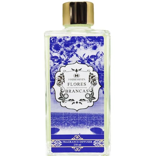 O difusor de ambientes Flores Brancas da Madressenza traz a tradição dos azulejos portugueses com a beleza das flores brancas. Possui um aroma floral que transmite tranquilidade e paz, dando a sensação de estar nos campos verdes com flores variadas. O Difusor Flores Brancas pertence à Coleção Flores Brancas da Madressenza, que nos presenteia com desenhos inspirados nos azulejos portugueses. A essência nos leva direto para os campos verdes e floridos, dando um toque de suavidade e delicadeza das flores brancas combinado com seu aroma adocicado e refrescante, perfeito para os mais diferentes momentos e despertando os mais variados sentimentos e sensações. É inspirado nos campos europeus esverdeados e vibrantes, com o contraste do branco aveludado das flores brancas, nos traz sensações de paz, calma e tranquilidade com a tradição da fragrância da Coleção. Concebido na coleção Flores Brancas da Madressenza, o Difusor Flores Brancas é apresentada em um frasco de vidro adesivado com desenhos de azulejos portugueses de flores com tampa dourada. Especificações: Frasco de vidro com válvula dourada e adesivo da coleção Acompanha caixa Notas Olfativas: Floral refrescante de saída adocicada, em perfumes de flores com toque cítrico. Família Olfativa: Floral cítrico. Modo de usar: Mergulhe as varetas virando-as recorrentemente para uma melhor dissipação dos aromas. Especificações técnicas do Produto Sem caixa, com vareta : Altura: 25 cm. Largura: 6 cm. Comprimento: 6 cm. Peso: 0,505 kg. Conteúdo: 250 ml. Ean: 7898954498836