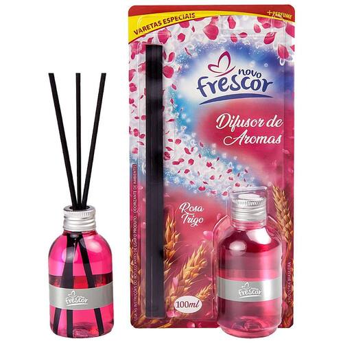 O difusor de aromas novo frescor rosa trigo é suave e delicado com harmonia entre as notas florais e doces, proporciona a sensação de ambiente aconchegante. A fragrância é liberada através de varetas especiais que garantem um agradável perfume para o seu dia-a-dia. O difusor de aromas com varetas especiais, aromatiza seus ambientes de forma contínua e suave. As varetas de fibra de algodão garantem que os aromas estejam presentes nos ambientes mesmo sem a necessidade de ficar virando as varetas. Além de aromatizar os ambientes o difusor de aromas novo frescor é indicado como objeto decorativo, e pode ser utilizado no ambiente que você desejar. Instruções de uso: 1 - retire o frasco do seu difusor de aromas da embalagem. 2 - abra a tampa do frasco, em seguida remova a vedação que se encontra no fundo da tampa. 3 - coloque novamente a tampa, agora sem a vedação. 4 - introduza as varetas no frasco para que o perfume seja absorvido. 5 - lembre-se de virar as varetas para mantê-las sempre umedecidas e assim garantir a exalação do perfume no ambiente. Recomendações: Para uma melhor performance do seu difusor de aromas novo frescor, posicione o mesmo em ambientes ventilados. Caso queira intensificar o perfume no ambiente, vire as varetas com maior frequência. Para suavizar o perfume, introduza uma quantidade menor de varetas no frasco. Se o líquido vazar por alguma eventualidade, limpe imediatamente a superfície com um pano ou papel toalha para que as superfícies atingidas não sejam danificadas, em seguida substitua o difusor de aromas novo frescor. Não recomendamos a utilização sobre superfícies polidas, pintadas ou plásticas Ean: 7898960061499